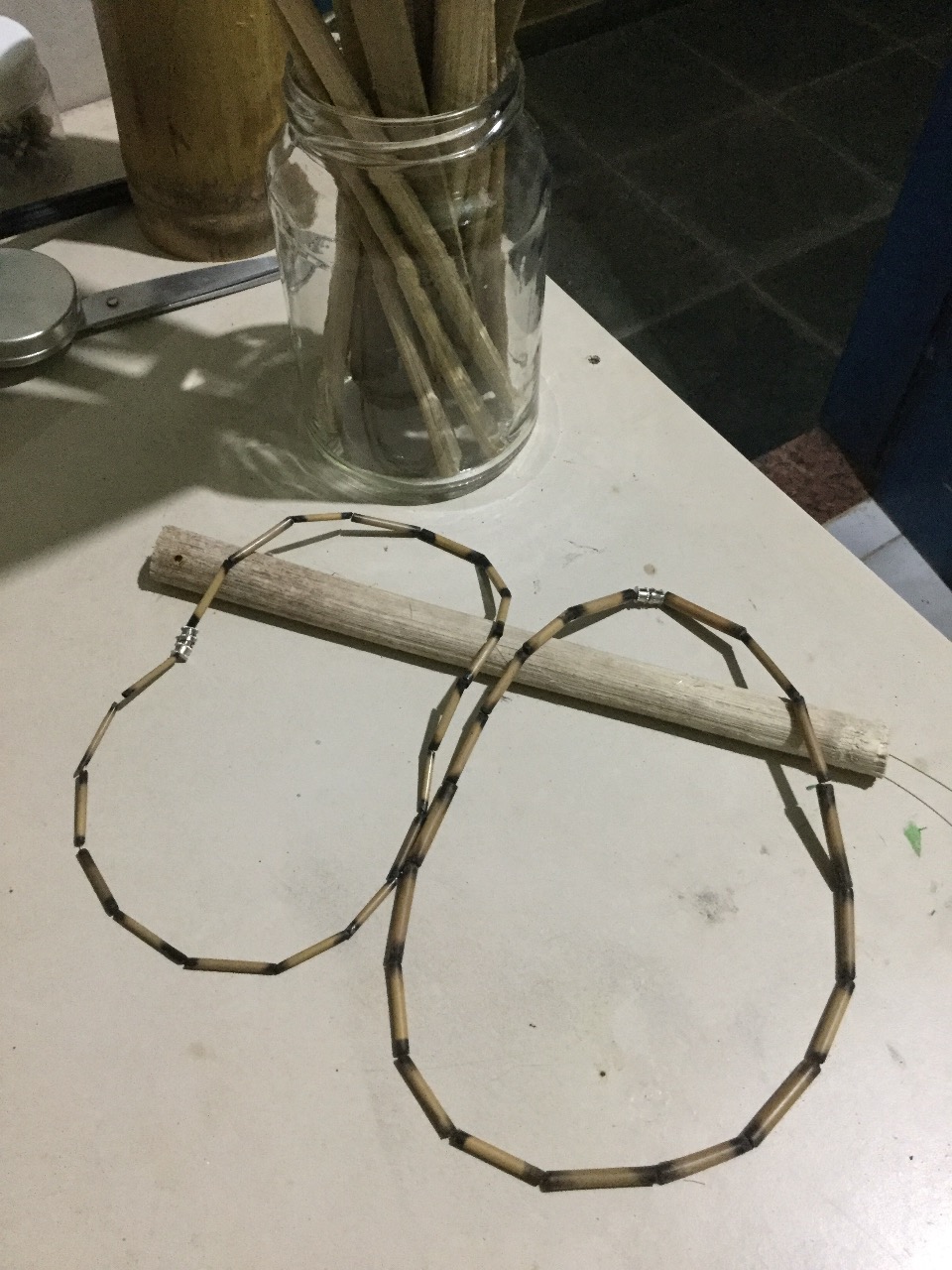 Colar de bambu agroflorestal produzido por Rosângela no Sítio do Galo, Saquarema, RJ.