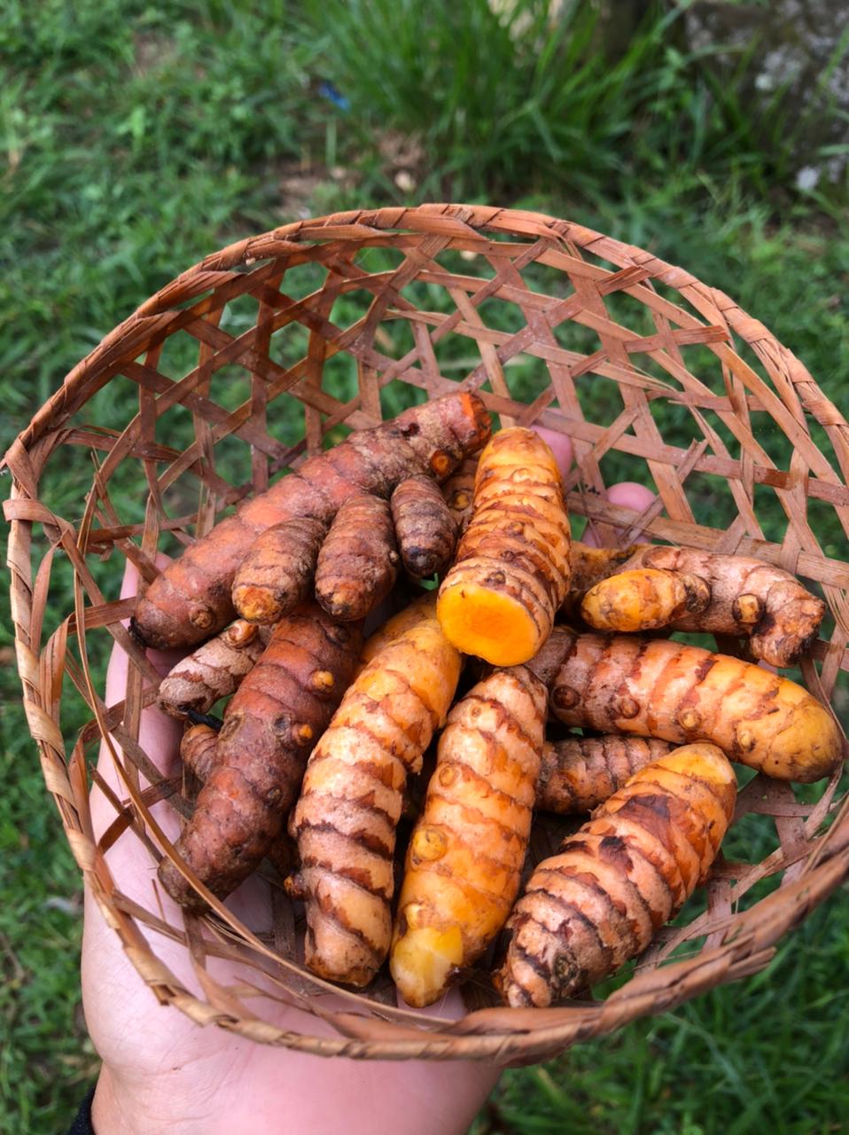 Cúrcuma (açafrão da terra) orgânica produzida na Ecovila Nascentes do Tinguí, Saquarema, RJ.