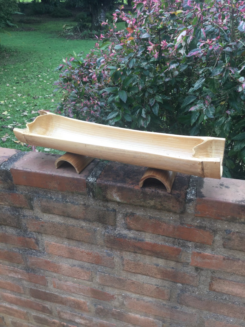 Jardineira de bambu agroflorestal com suporte, feito artesanalmente por Rosângela, do Sítio do Galo, Saquarema, RJ.