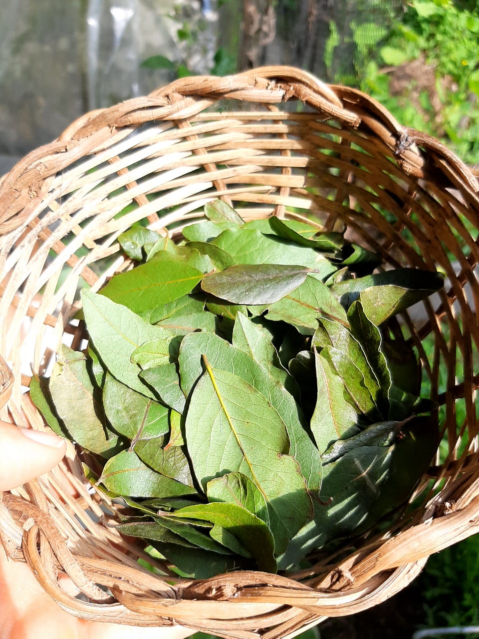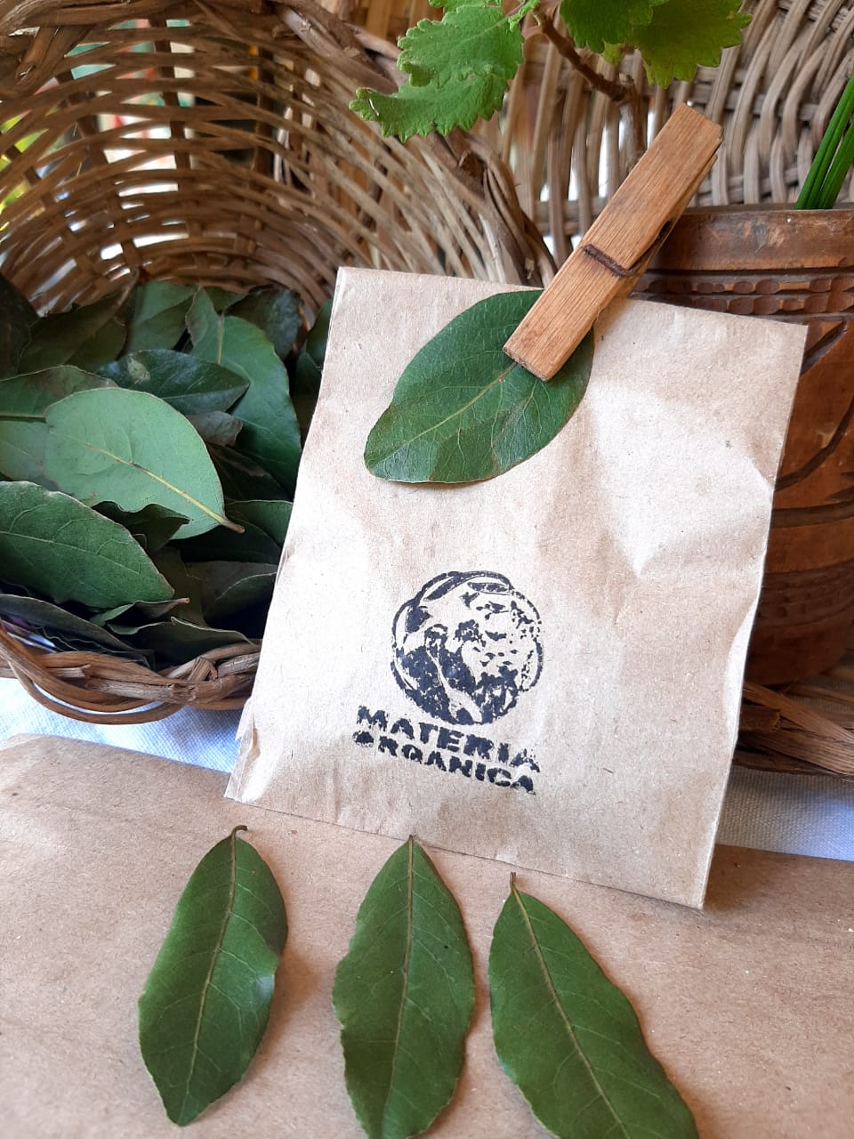 Folhas de louro orgânico. Produção Mel e Mateus, Ecovila Nascentes do Tinguí, Saquarema, RJ. Aproximadamente 40 folhas.