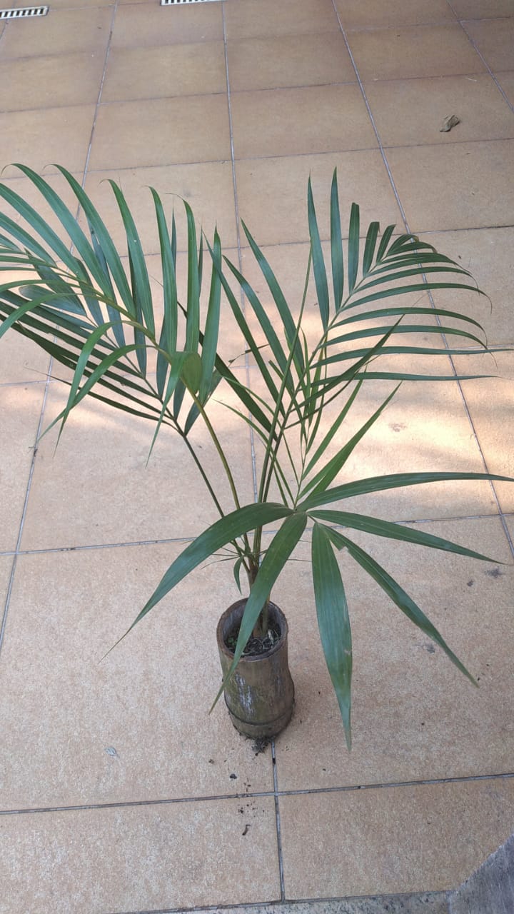 Muda de Areca em vaso de bambu