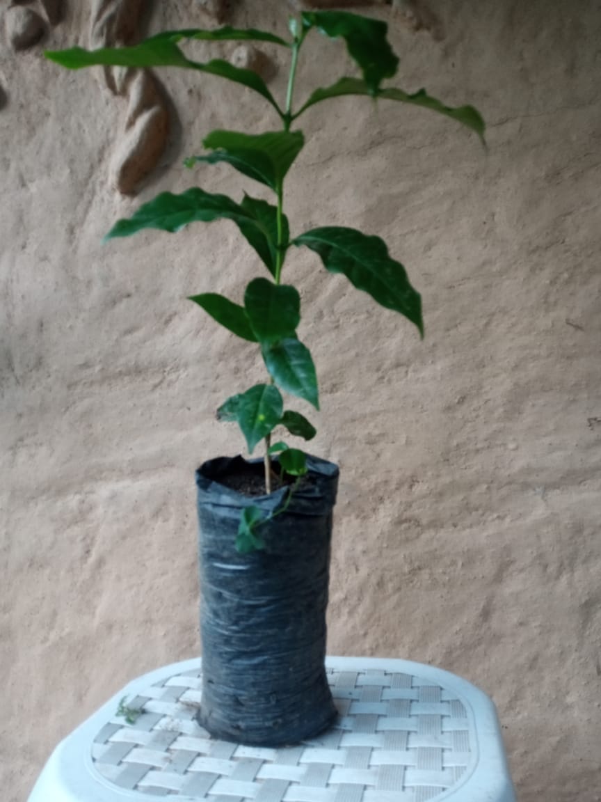 Muda de café cultivada pela Marilza no viveiro da Ecovila Nascentes do Tinguí, Saquarema, RJ.