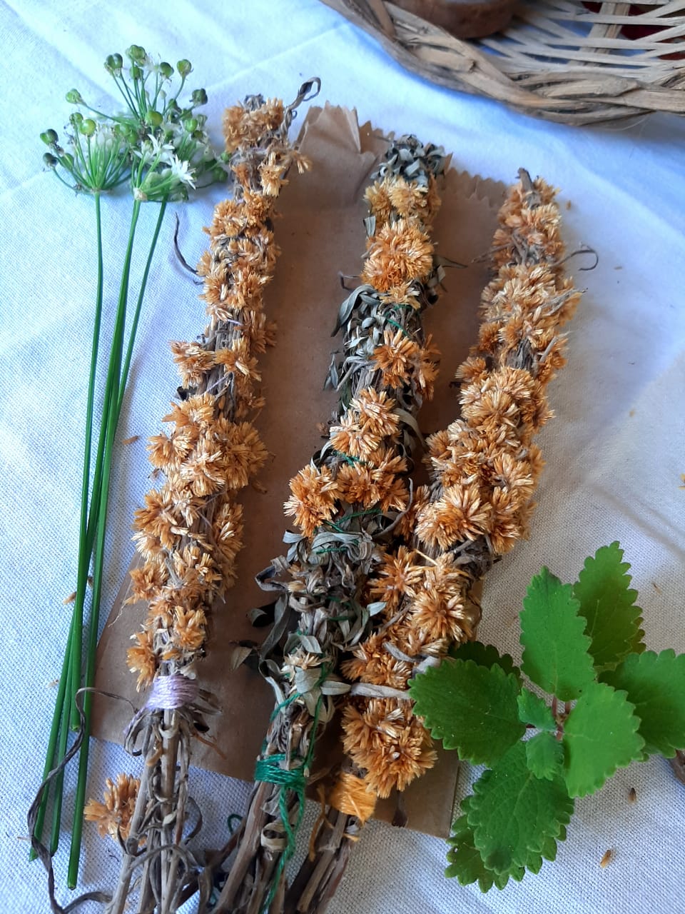Feitos com macela, artemísia e vetiver por Melina, Matéria Orgânica, Ecovila Nascentes do Tinguí, Saquarema, RJ.